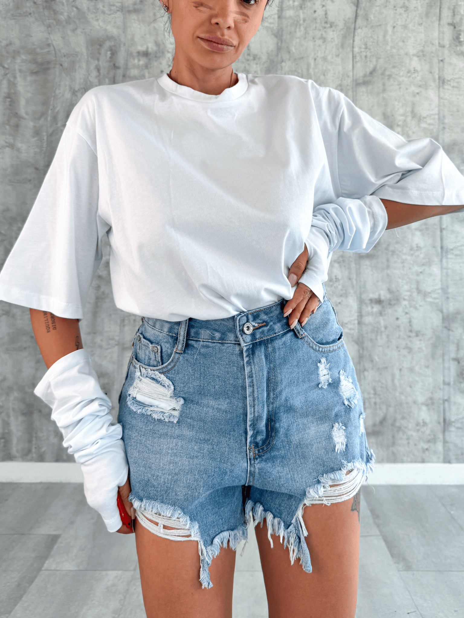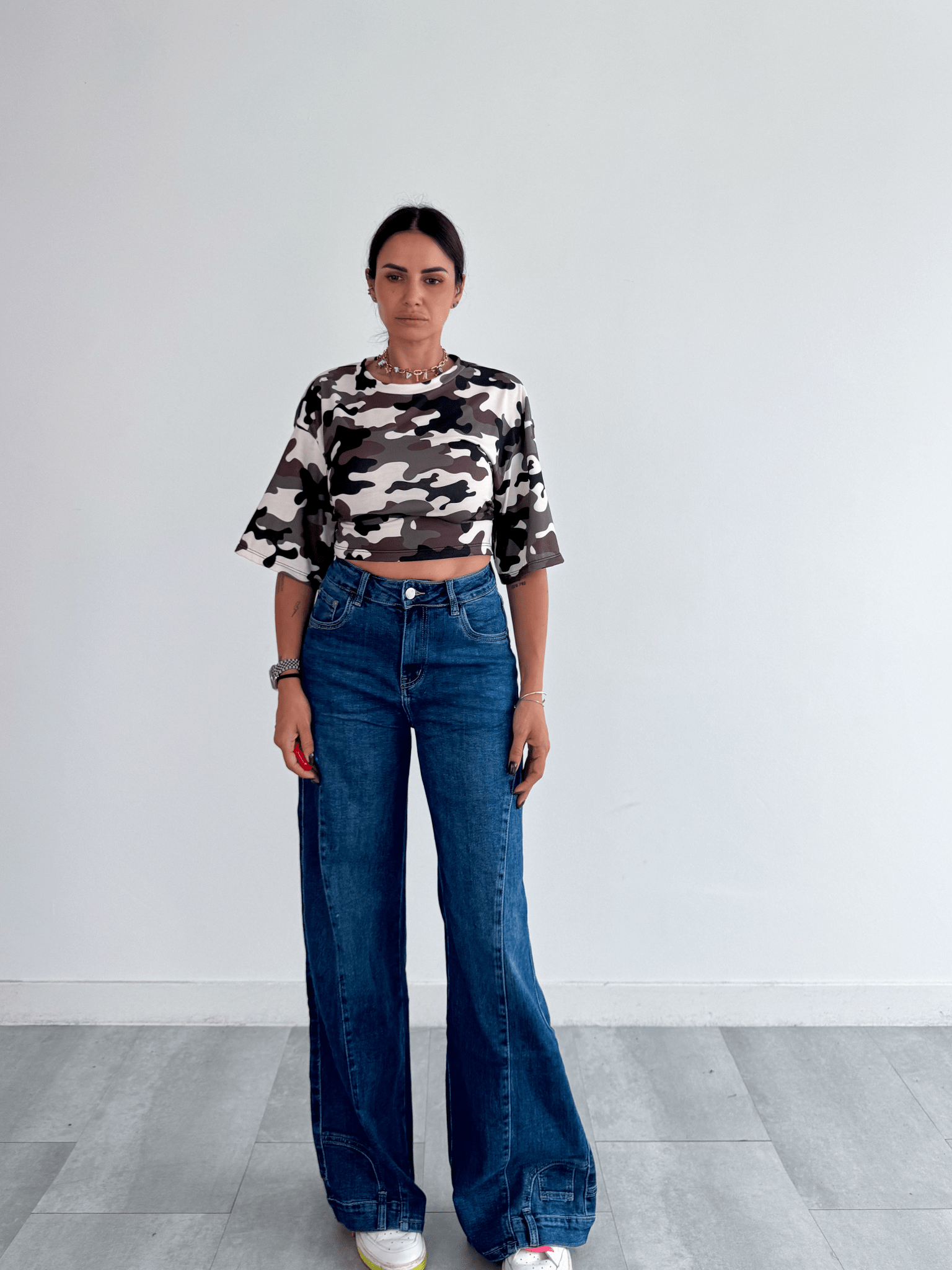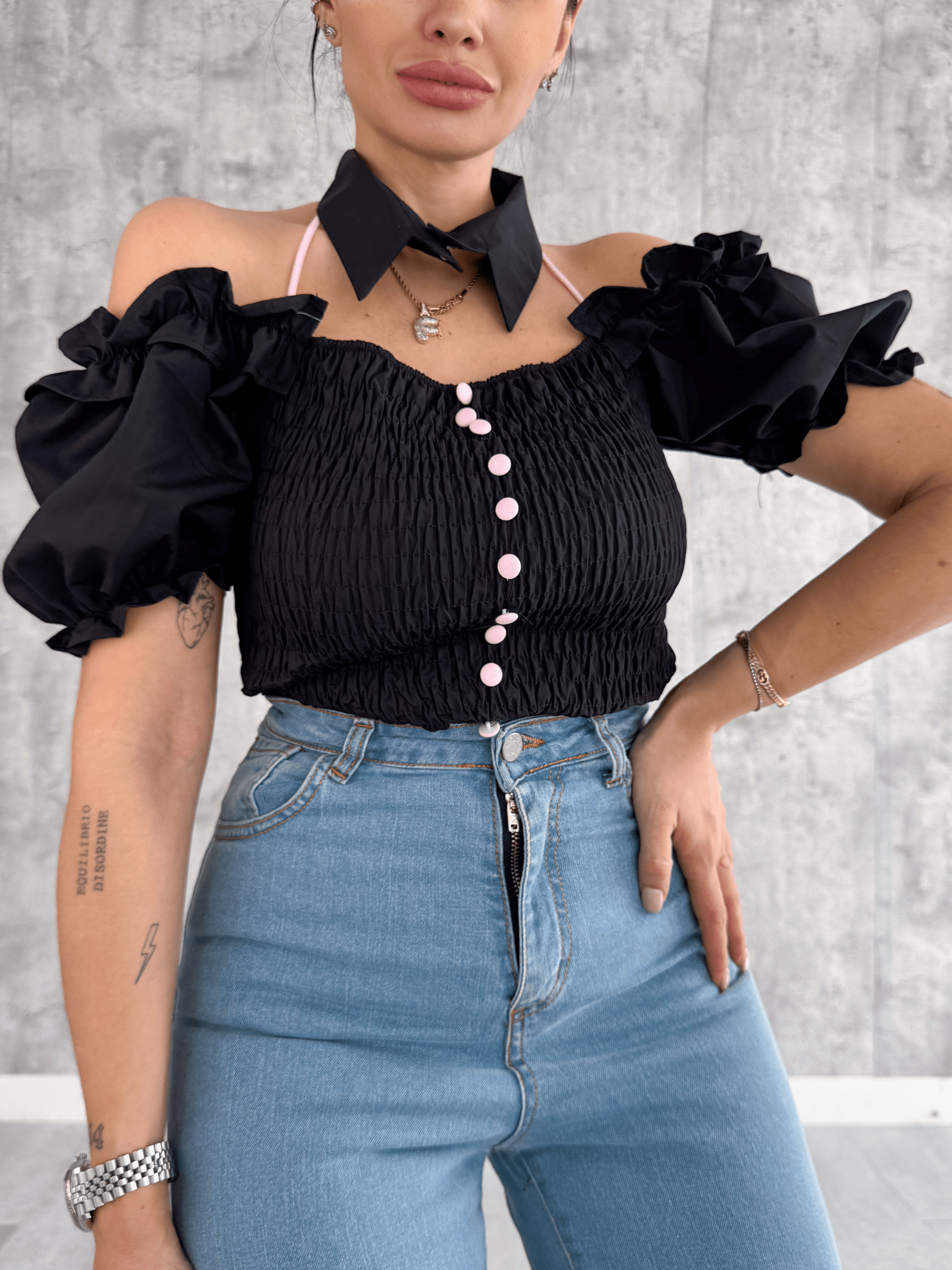 Camicia Crop Spallone - Grigia